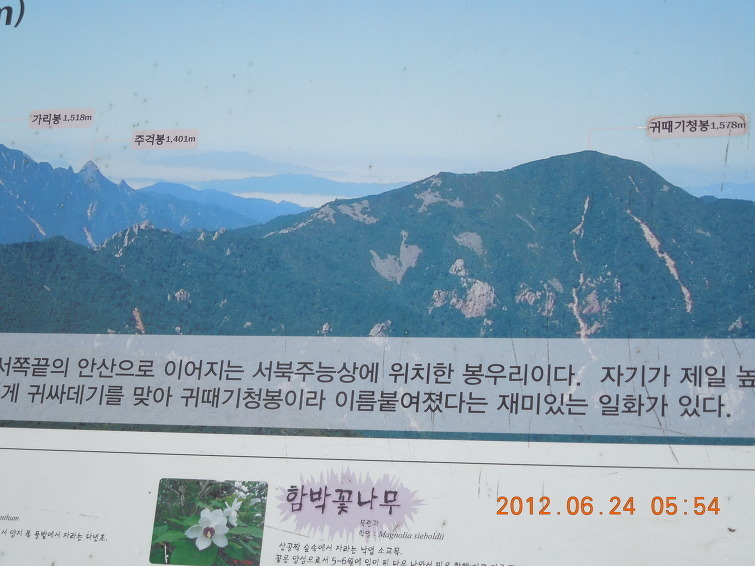 인제군 북면 용대리 해발 1천578m의 '귀때기청봉'은 설악산 봉우리 중에서 자기가 제일 높다고 으스대다가