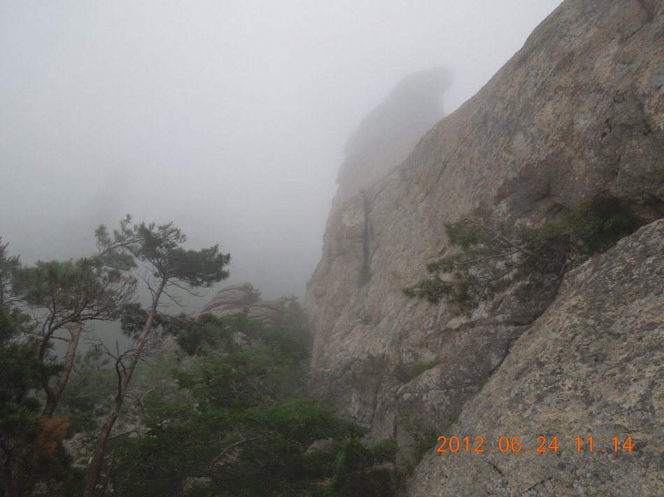 안개속에서 더욱 빛나는 공룡의 암봉들 (사진 : 완산님)